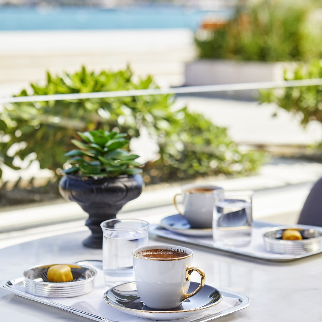 Selamlique, adını geleneksel Türk konaklarındaki misafirlerin sıcak bir şekilde karşılandığı ve ağırlandığı tarihi selamlık bölümünden almaktadır. Harem mahremiyetinden ayrılan bu ayrı alan, Türkçe selamlaşmanın özünü taşıyor. Bu miras ile Türk kahvesini çevreleyen sevilen sosyal ritüeller arasındaki uyum, sohbetler ve leziz tatlıların harmanlanmasıyla mükemmel bir uyum içinde yankılanıyor. Selamlique bu bağı benimserken aynı zamanda herkesi olağanüstü selamlığına davet ediyor.
