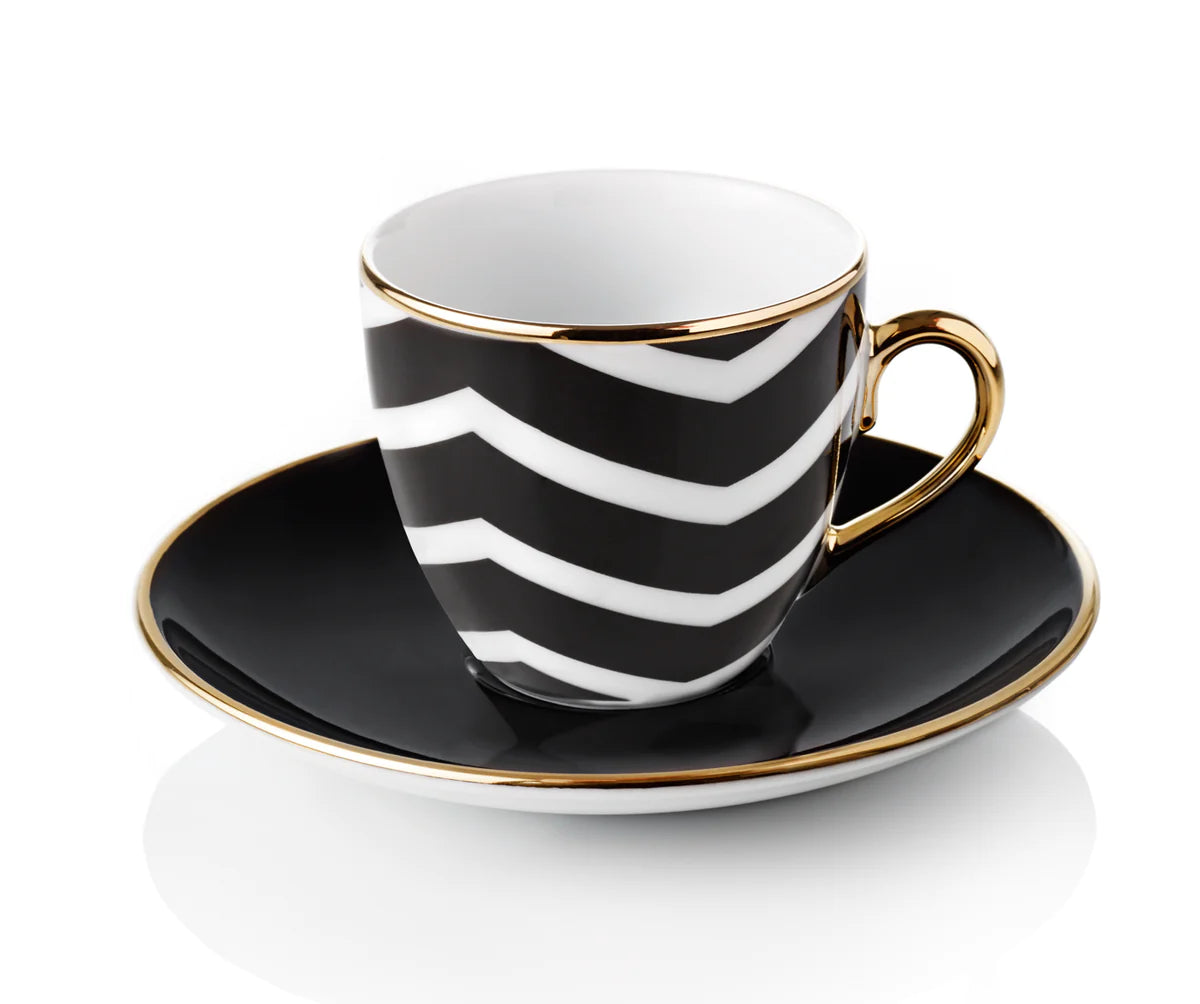 2'li Zigzag Siyah Türk Kahvesi Fincanları